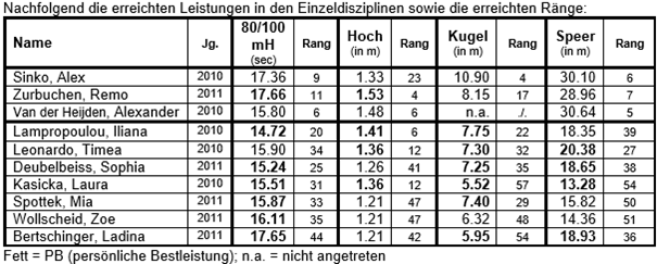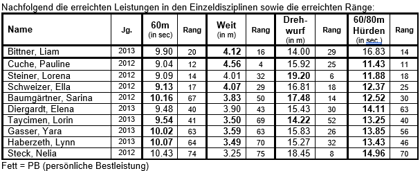 Wir gratulieren allen Athletinnen und Athleten zu ihren guten bis hervorragenden Leistungen!