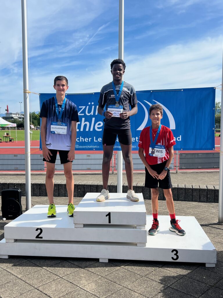 Im Hochsprung der Knaben sicherte sich Marc Baumgärtner mit einer neuen PB von 1.57m den Silberrang! Er landete zudem beim Speerwurf auf dem 4. Platz (31.38m) und im Kugelstossen erreichte er mit neuer PB von 9.58m den 6. Platz. Seine Teamkollegen Noah Hongler und Fabrice Siegrist belegten im Kugelstossen die Plätze 7 und 8, ebenfalls mit neuen Bestweiten von 9.45m und 9.36m. Fabrice startete darüber hinaus ebenfalls noch im Hochsprung (1.40m, Rang 9) und im Speer (28.89m = PB, Rang 9) sowie im 80m Hürden-Sprint (14.03 sec), bei dem er sich aber nicht für den Finallauf qualifizieren konnte. Lief es beim Team-Kollegen Liam Bittner im Hochsprung noch nicht so gut (1.25m, Rang 16), so konnte er sich im 600m-Lauf aber über eine neue PB (1:51.38 min, Rang 13) freuen.