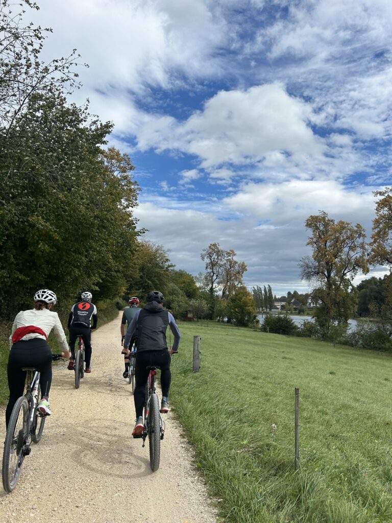 Die Gruppe schlug ein zügiges Tempo an. Die Teammitglieder wechselten sich in der Führungsarbeit ab, sodass wir schneller als geplant unterwegs waren. Immer wieder wurden Angriffe lanciert, mal in einer Abfahrt, mal wenn es bergauf ging. Diese Tempowechsel sorgten für Abwechslung! Nach ungefähr 1 Stunde und 30 Minuten erreichten wir das erste Etappenziel, natürlich mit Zwischenverpflegung: Kuchen, Bananen und Getreideriegel wurden genüsslich verzehrt, die Bidons mit Isostar nachgefüllt.